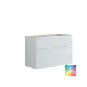 De onderkasten met 2 lades zijn 64 cm hoog en hebben een hoge bodemlade die veel ruimte biedt voor het opbergen van je badkamerartikelen. Met de geïntegreerde grepen krijg je een elegant en gestroomlijnd ontwerp dat perfect past in de moderne badkamer. De onderkasten kunnen alleen worden gebruikt of in combinatie met een wastafelmeubel en een blad met een opbouw wastafel om een asymmetrische oplossing te creëren. Kies uit verschillende kleuren om de perfecte match voor je interieur te vinden. Met de onderkasten met 2 lades krijg je zowel stijl als praktische functionaliteit, zodat je badkamer er opgeruimd en stijlvol uitziet. Let op: er geldt een opstarttarief (BI1) voor producten met wenskleur. Deze wordt eenmalig betaald per wenskleur, ongeacht het aantal producten. Vergeet niet de kleine praktische dingen aan je badkamermeubels toe te voegen waar je dagelijks plezier van hebt. Bijvoorbeeld verlichting in lades en kastjes, ingebouwde stopcontacten en gedimde sensorlampjes onder de meubels om nachtelijke bezoeken aan de badkamer te begeleiden. Opties worden tegelijk met je meubels bested.