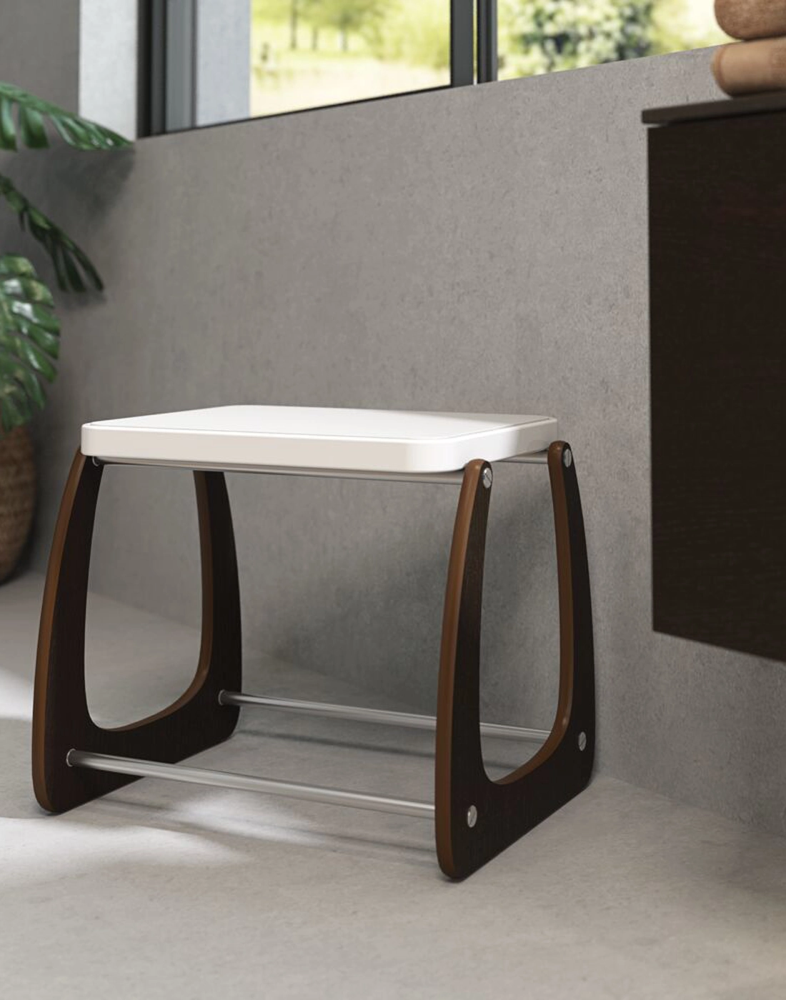 De Dansani Calidris kruk is perfect als zitplaats bij een make-up tafel in de badkamer, maar ook als zitplaats voor de kinderen in de badkamer. Het krukje wordt geleverd met een mooi wit kussen zodat je comfortabel kunt zitten. Het past perfect bij de kleuren van de rest van je Dansani Calidris badkamer. Let op: er geldt een opstarttarief (BI1) per eiken en wenskleur. Deze wordt eenmalig betaald per eiken en wenskleur, ongeacht het aantal producten.
