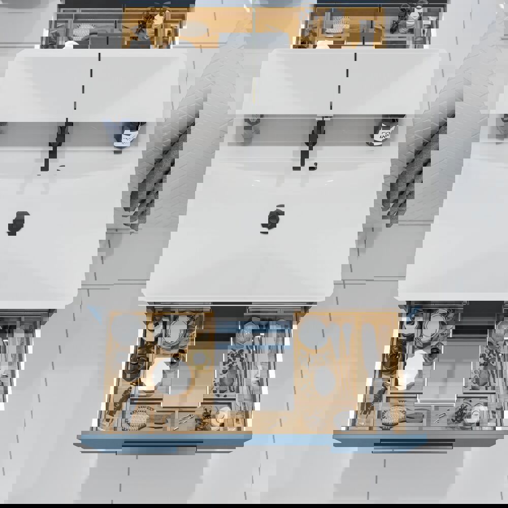 Met houten ladeverdelers voor de bovenste lade kun je je lades beter organiseren en netjes houden. De houten bakken zijn verdeeld in verschillende compartimenten waar je wattenstaafjes, crèmes, tandenborstel, enz. in kunt bewaren. De houten bakjes zijn zowel praktisch als mooi in je lade.