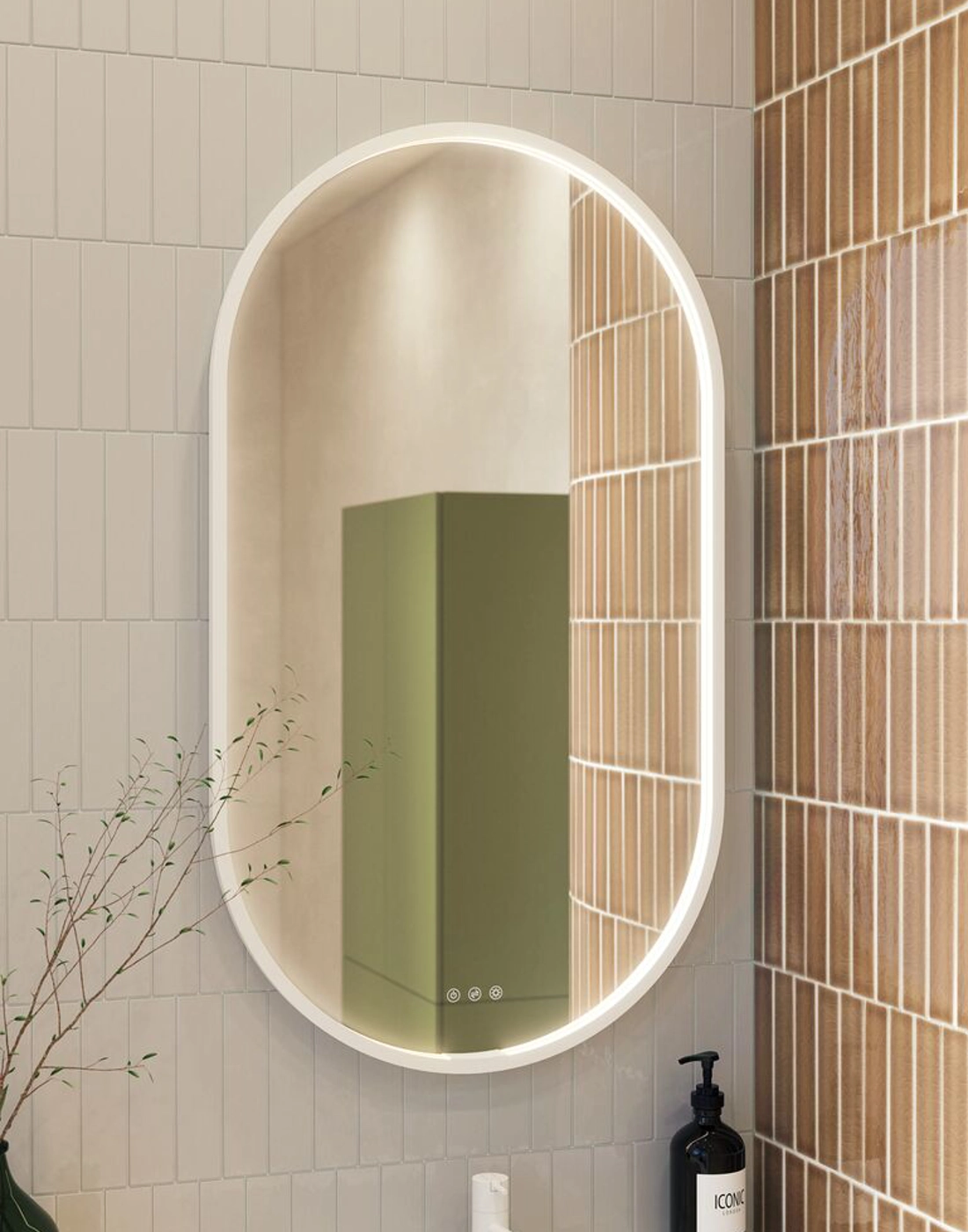 De Moon spiegel is een mooie en elegante spiegel met een lijst die het een decoratief element maakt in elk interieur. De spiegel is ovaal van vorm. Het stevige frame van de spiegel is gemaakt van robuuste materialen en geeft de spiegel een moderne en stijlvolle uitstraling. Je kunt ook de sterkte en kleurtemperatuur van het licht regelen, want de Moon ovale spiegel is standaard voorzien van lichtregeling. De lijst rond de spiegel is verkrijgbaar in drie verschillende kleuren, zwart, wit en messing, zodat je hem kunt aanpassen aan je persoonlijke stijl en inrichting. Perfect voor de badkamer of slaapkamer, met de Moon Oval Mirror creëer je een ruimte met elegantie en tijdloze schoonheid. Je kunt een gemonteerd spiegelverwarming voor de spiegel kopen om te voorkomen dat de spiegel beslaat tijdens het douchen.