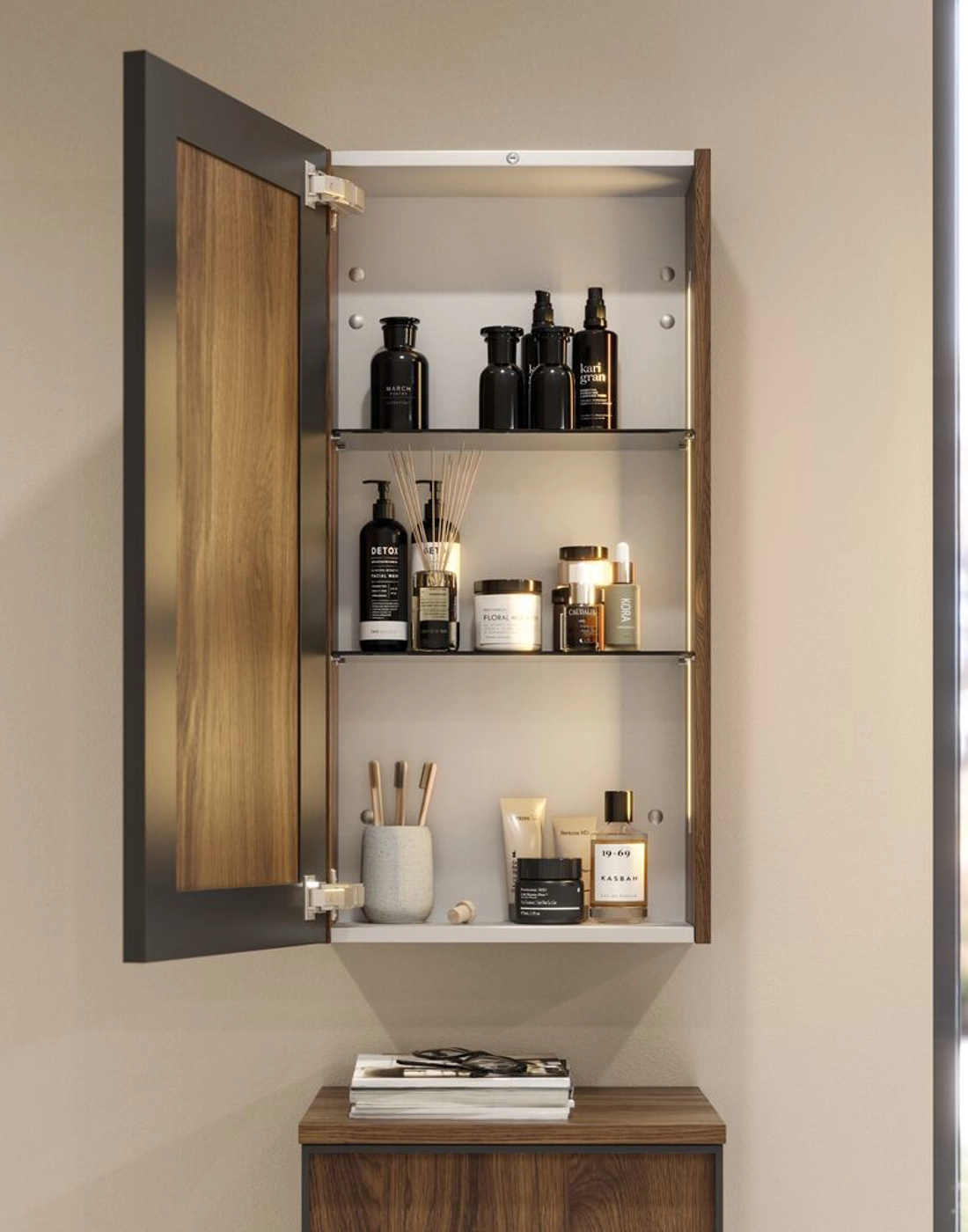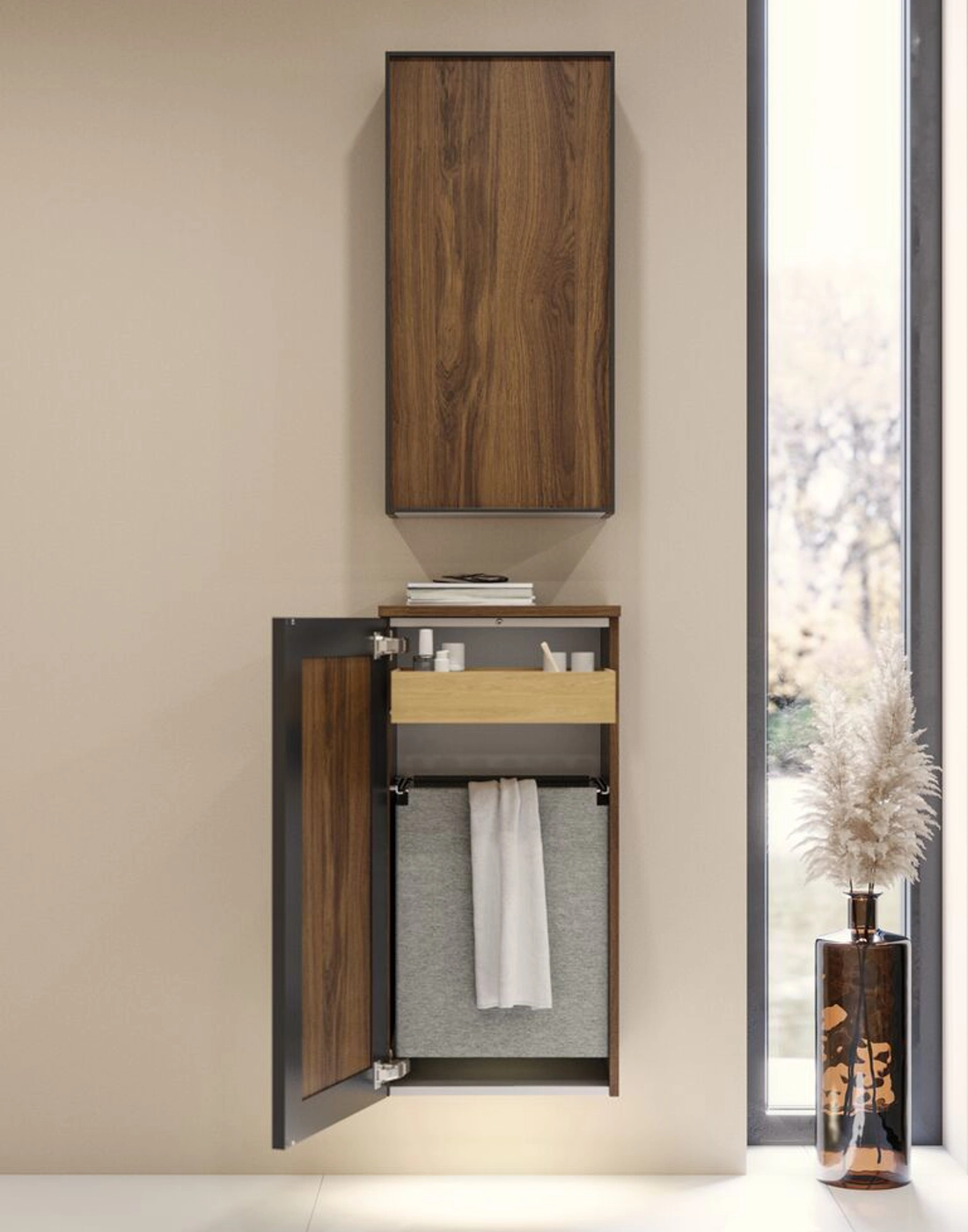 De onderkast met een zwarte lijst in Versie B biedt een functionele en stijlvolle oplossing voor je badkamer. Met een breedte van 40 cm en een diepte van 35 cm is deze onderkast uitgerust met een uittrekbare lade en een waszak, waardoor het ideaal is voor zowel cosmetica als wasgoed. De zwarte lijst voegt een moderne rand toe aan je badkamer, terwijl het praktische design ervoor zorgt dat alles georganiseerd en gemakkelijk toegankelijk blijft. Met deze onderkast kun je je opbergruimte optimaliseren en een opgeruimde omgeving creëren waarin je gemakkelijk alles vindt wat je nodig hebt. Let op: er geldt een opstarttarief (BI1) voor producten met wenskleur. Deze wordt eenmalig betaald per wenskleur, ongeacht het aantal producten. Vergeet niet de kleine praktische dingen aan je badkamermeubels toe te voegen waar je dagelijks plezier van hebt. Bijvoorbeeld verlichting in lades en kastjes, ingebouwde stopcontacten en gedimde sensorlampjes onder de meubels om nachtelijke bezoeken aan de badkamer te begeleiden. Opties worden tegelijk met je meubels bested.