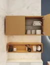 Creëer een balans tussen functionaliteit en een modern design met de 20 cm hoge open bovenkasten van Dansani Calidris. Deze elegante kasten zijn op maat gemaakt voor de badkamer, waar ze niet alleen praktische opbergruimte bieden, maar ook stijlvolle ruimte creëren om je persoonlijke spullen uit te stallen. Het compacte formaat van 20 cm maakt deze meubels ideaal om de ruimte te maximaliseren zonder afbreuk te doen aan het design. Gebruik ze voor het organiseren van handdoeken, toiletartikelen of om decoratieve elementen uit te stallen en een persoonlijk tintje te geven aan je badkamer. Om de items te benadrukken, kun je binnenverlichting toevoegen aan deze bovenkasten. Dit zorgt voor een warme en uitnodigende sfeer in de badkamer. Let op: er geldt een opstarttarief (BI1) per eiken en wenskleur. Deze wordt eenmalig betaald per eiken en wenskleur, ongeacht het aantal producten.