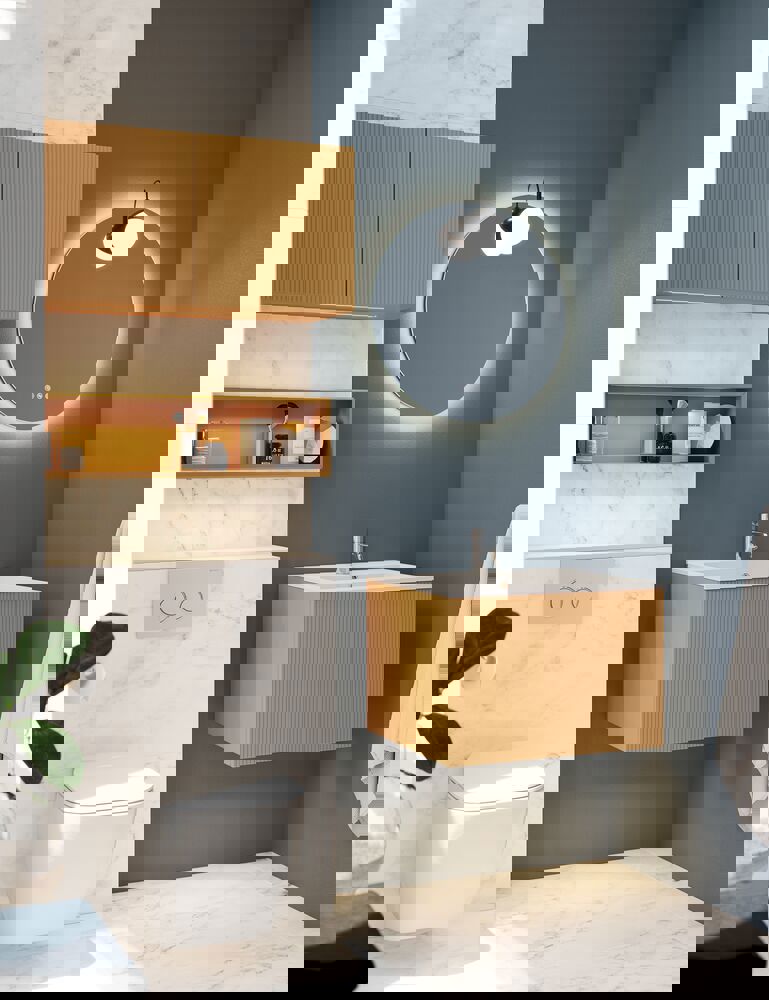 Creëer een balans tussen functionaliteit en een modern design met de 20 cm hoge open bovenkasten van Dansani Calidris. Deze elegante kasten zijn op maat gemaakt voor de badkamer, waar ze niet alleen praktische opbergruimte bieden, maar ook stijlvolle ruimte creëren om je persoonlijke spullen uit te stallen. Het compacte formaat van 20 cm maakt deze meubels ideaal om de ruimte te maximaliseren zonder afbreuk te doen aan het design. Gebruik ze voor het organiseren van handdoeken, toiletartikelen of om decoratieve elementen uit te stallen en een persoonlijk tintje te geven aan je badkamer. Om de items te benadrukken, kun je binnenverlichting toevoegen aan deze bovenkasten. Dit zorgt voor een warme en uitnodigende sfeer in de badkamer. Let op: er geldt een opstarttarief (BI1) per eiken en wenskleur. Deze wordt eenmalig betaald per eiken en wenskleur, ongeacht het aantal producten.