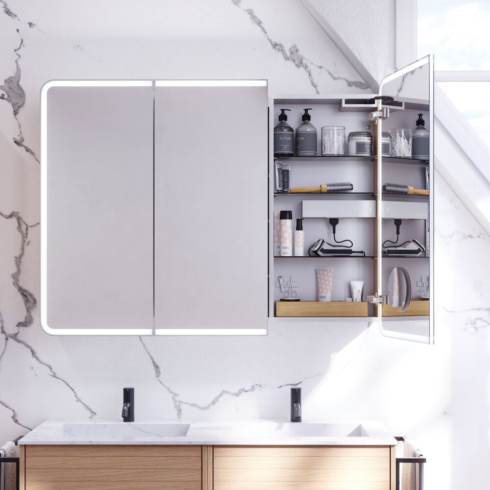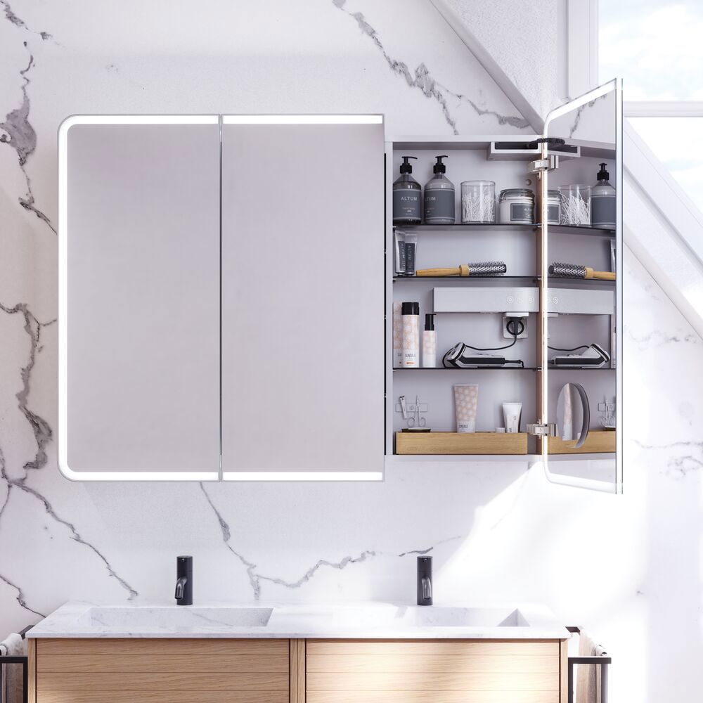 De Radience spiegelkast combineert modern design en praktische opbergruimte in één. Achter de elegante spiegeldeuren vind je genoeg ruimte voor je dagelijkse toiletspullen, zodat je je badkamer gemakkelijk georganiseerd kunt houden. Het lichtkader rond de rand omlijst je reflectie prachtig en creëert een gezellig licht dat je rechtstreeks vanaf de deur draadloos kunt bedienen. Met een anticondensfunctie in de spiegel en de optie van verschillende maten en kleuren is Radience zowel een praktische als stijlvolle oplossing - perfect voor de hedendaagse trend waarbij de badkamer zowel functioneel als persoonlijk moet zijn. Let op: er geldt een opstarttarief (BI1) voor producten met wenskleur. Deze wordt eenmalig betaald per wenskleur, ongeacht het aantal producten.