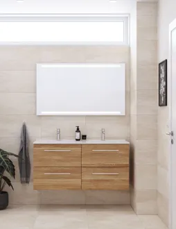 De Repeat spiegel is een stijlvolle en praktische keuze voor je badkamer. De spiegel heeft ingebouwd licht aan de boven- en onderzijde, waardoor de ruimte optimaal verlicht wordt. De Repeat spiegel is verkrijgbaar met of zonder sensor. Als je kiest voor het model met sensor, kun je het licht gemakkelijk aan- en uitzetten zonder de spiegel aan te raken. De spiegel is van hoge kwaliteit, waardoor hij duurzaam is. Je kunt een spiegelverwarming voor de spiegel kopen om te voorkomen dat de spiegel beslaat tijdens het douchen. Je moet de verwarming zelf installeren.