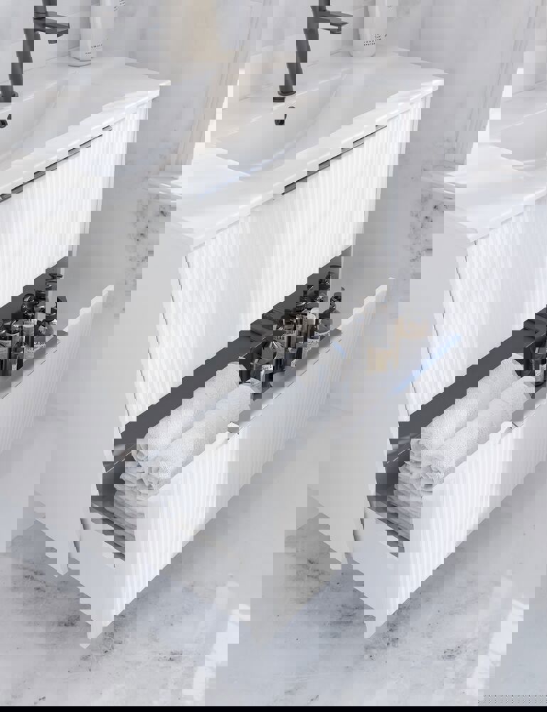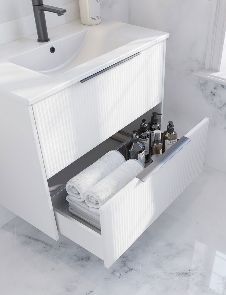 De Ruler greep is ontworpen om discreet en elegant langs de rand van de lade of deur te zitten, wat zorgt voor een strakke en moderne uitstraling. Met zijn slanke profiel biedt de Ruler een minimalistisch detail dat harmonieus in het meubel wordt geïntegreerd, zonder het ontwerp te domineren. Deze greep is ideaal voor degenen die op zoek zijn naar een subtiele en functionele oplossing die de lijnen van het meubel benadrukt en bijdraagt aan een schone en tijdloze uitstraling in de badkamer.