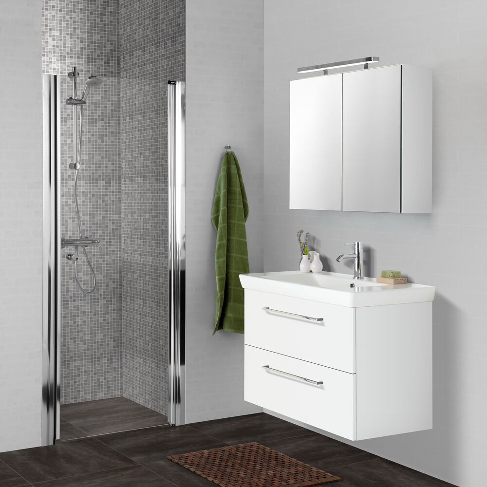 De Select spiegelkast is veel meer dan alleen een spiegelkast - het is jouw persoonlijke badkamerupgrade. Kies je eigen lampen en creëer de perfecte verlichting om je dag in stijl te beginnen. Met de spiegelkast krijg je veel opbergruimte en een stopcontact in de spiegelkast voor je elektrische apparaten. Ervaar gemak en elegantie in één met de Select spiegelkast - je dagelijkse metgezel voor een stralende ochtend.