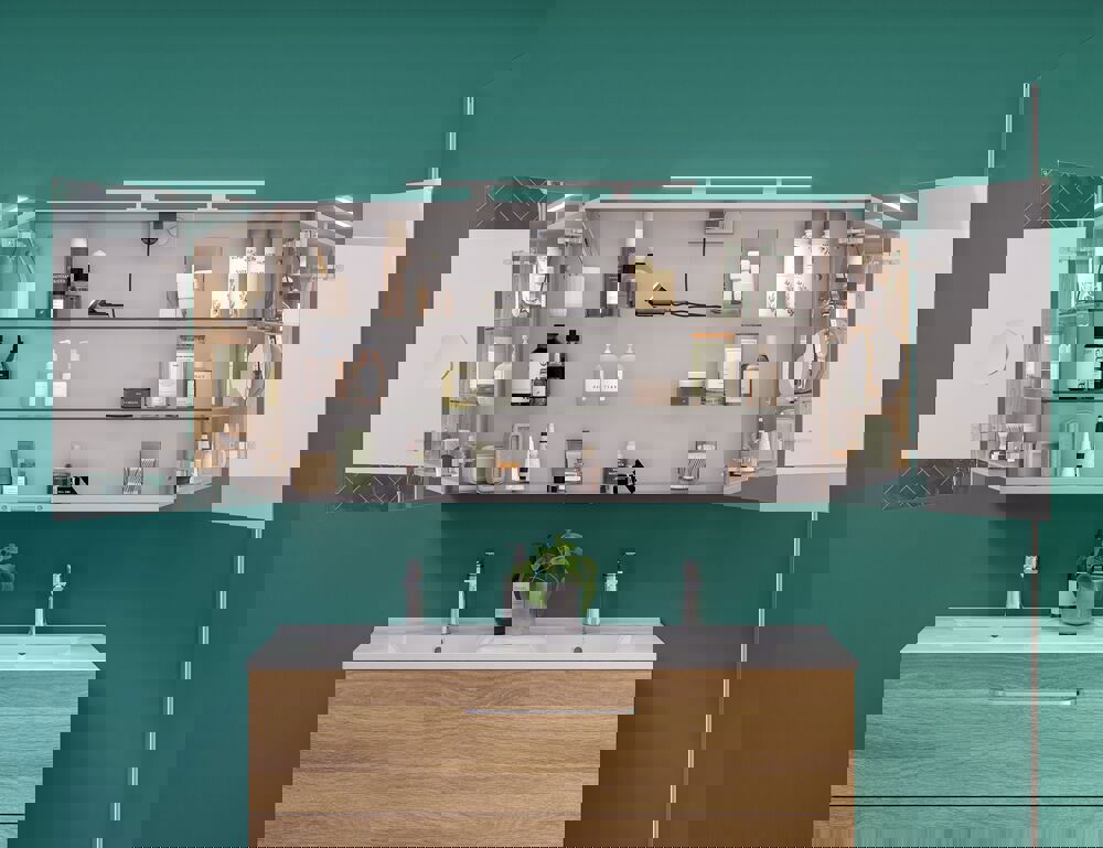 De Select spiegelkast is veel meer dan alleen een spiegelkast - het is jouw persoonlijke badkamerupgrade. Kies je eigen lampen en creëer de perfecte verlichting om je dag in stijl te beginnen. Met de spiegelkast krijg je veel opbergruimte en een stopcontact in de spiegelkast voor je elektrische apparaten. Ervaar gemak en elegantie in één met de Select spiegelkast - je dagelijkse metgezel voor een stralende ochtend.