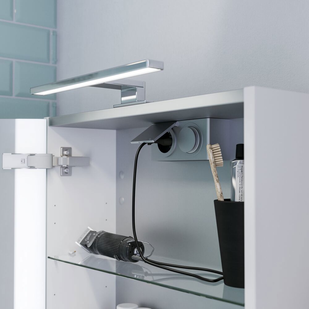 De Select spiegelkast is veel meer dan alleen een spiegelkast - het is jouw persoonlijke badkamerupgrade. Kies je eigen lampen en creëer de perfecte verlichting om je dag in stijl te beginnen. Met de spiegelkast krijg je veel opbergruimte en een stopcontact in de spiegelkast voor je elektrische apparaten. Ervaar gemak en elegantie in één met de Select spiegelkast - je dagelijkse metgezel voor een stralende ochtend.