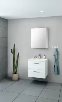 De Select spiegelkast is veel meer dan alleen een spiegelkast - het is jouw persoonlijke badkamerupgrade. Kies je eigen lampen en creëer de perfecte verlichting om je dag in stijl te beginnen. Met de spiegelkast krijg je veel opbergruimte en een stopcontact in de spiegelkast voor je elektrische apparaten. Ervaar gemak en elegantie in één met de Select spiegelkast - je dagelijkse metgezel voor een stralende ochtend.