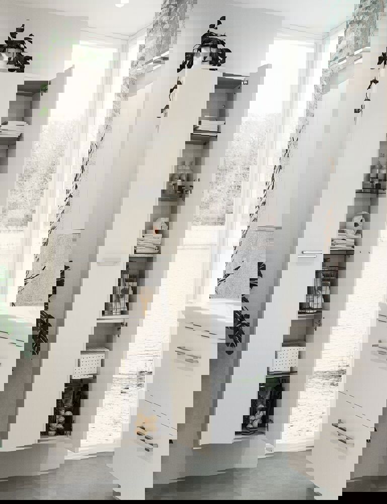 De Select spiegelkast is veel meer dan alleen een spiegelkast - het is jouw persoonlijke badkamerupgrade. Kies je eigen lampen en creëer de perfecte verlichting om je dag in stijl te beginnen. Met de spiegelkast krijg je veel opbergruimte en een stopcontact in de spiegelkast voor je elektrische apparaten. Ervaar gemak en elegantie in één met de Select spiegelkast - je dagelijkse metgezel voor een stralende ochtend.