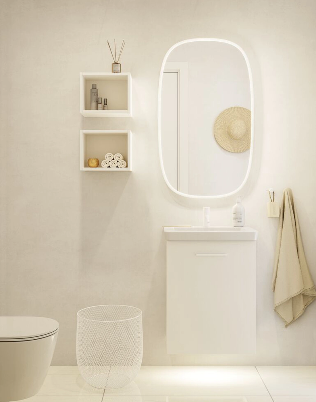 De Squircle spiegel heeft een unieke superellipsvorm die het beste van zowel vierkante als ronde vormen combineert en een visuele balans creëert die dynamiek aan je badkamer toevoegt. De Squircle verspreidt zacht licht op de muur, waardoor contrasten verminderd worden en een aangename sfeer in de ruimte ontstaat. Het transparante veld langs de rand straalt direct en efficiënt licht naar voren, ideaal om helder, natuurlijk licht te bieden. De spiegel is uiteraard voorzien van een instelbare lichtsterkte, zodat je de intensiteit en kleur van het licht eenvoudig kunt aanpassen aan je stemming of behoeften – alles met een dimfunctie die voldoende licht biedt voor elke situatie. Squircle is de perfecte combinatie van functie, ontwerp en kwaliteit, die zowel je badkamer als je verlichtingservaring verbetert. Je kunt een gemonteerd spiegelverwarming voor de spiegel kopen om te voorkomen dat de spiegel beslaat tijdens het douchen.