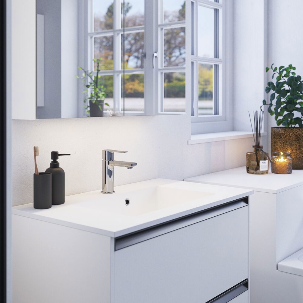 Krijg praktische opbergruimte en stijlvol design met de Style spiegelkast. De spiegelkast is perfect voor het opbergen van al je crèmes, deodorant, nagelknipper, tandenborstels en meer. Voeg verlichting toe aan de spiegelkast en regel de temperatuur en sterkte van het licht met één druk op de knop. De prachtige spiegelkast heeft een magneetstrip, verschuifbaar metalen planchet, vergrootspiegel en stopcontact met USB poorten, waardoor je ochtend- en avondroutine veel gemakkelijker wordt. Let op: er geldt een opstarttarief (BI1) voor producten met wenskleur. Deze wordt eenmalig betaald per wenskleur, ongeacht het aantal producten.