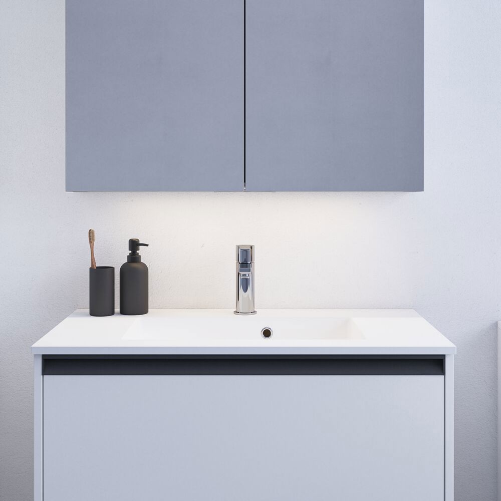 Krijg praktische opbergruimte en stijlvol design met de Style spiegelkast. De spiegelkast is perfect voor het opbergen van al je crèmes, deodorant, nagelknipper, tandenborstels en meer. Voeg verlichting toe aan de spiegelkast en regel de temperatuur en sterkte van het licht met één druk op de knop. De prachtige spiegelkast heeft een magneetstrip, verschuifbaar metalen planchet, vergrootspiegel en stopcontact met USB poorten, waardoor je ochtend- en avondroutine veel gemakkelijker wordt. Let op: er geldt een opstarttarief (BI1) voor producten met wenskleur. Deze wordt eenmalig betaald per wenskleur, ongeacht het aantal producten.