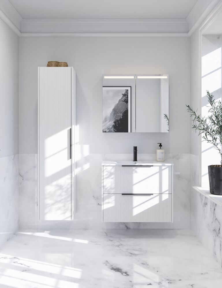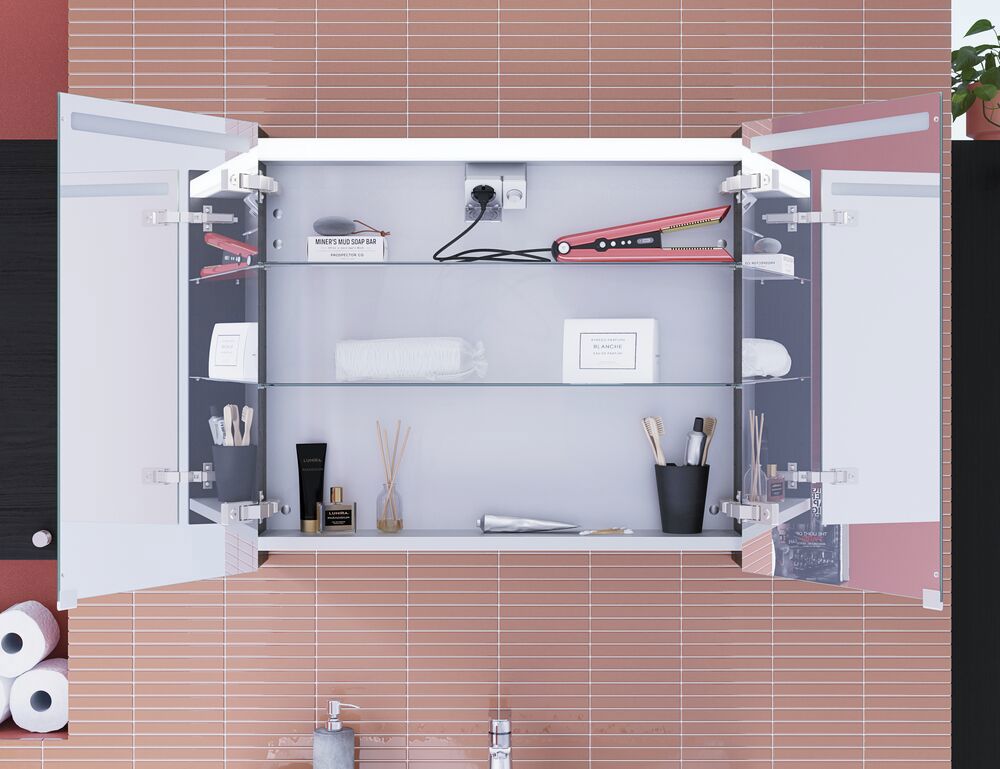 Begin de dag goed met de Top spiegelkast. Deze spiegelkast heeft een lichtlijst aan de bovenkant en binnenin de spiegelkast vind je veel opbergruimte en een stopcontact met schakelaar. Je krijgt dus veel meer dan je zou verwachten. Uiteraard is de spiegelkast verkrijgbaar met zijkanten in leuken kleuren of universeel met een spiegelende zijkant, zodat je de spiegelkast kunt afstemmen op je badkamermeubel en de rest van de badkamer.