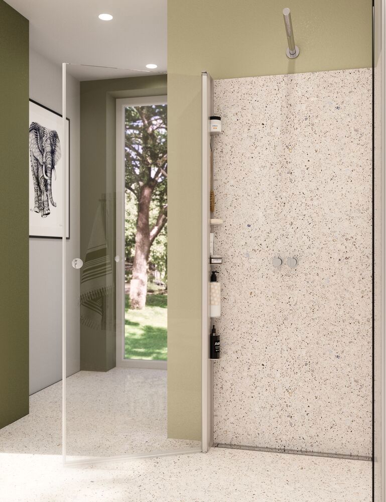 Tower is een innovatieve oplossing die uitzonderlijke opbergruimte in de douche biedt zonder afbreuk te doen aan het uiterlijk van de douche. Tower heeft 5 verwijderbare planchets die perfect zijn voor het organiseren van de producten en verzorgingsartikelen die je in je douche gebruikt. Met de praktische haken kunt u een spons, borstel of andere kleine spullen binnen handbereik ophangen. Om de Tower te plaatsen, kies je gewoon een deur die 10 cm smaller is. Tower is de ideale oplossing voor degenen die de ruimte in hun douche willen optimaliseren zonder afbreuk te doen aan stijl en functionaliteit.