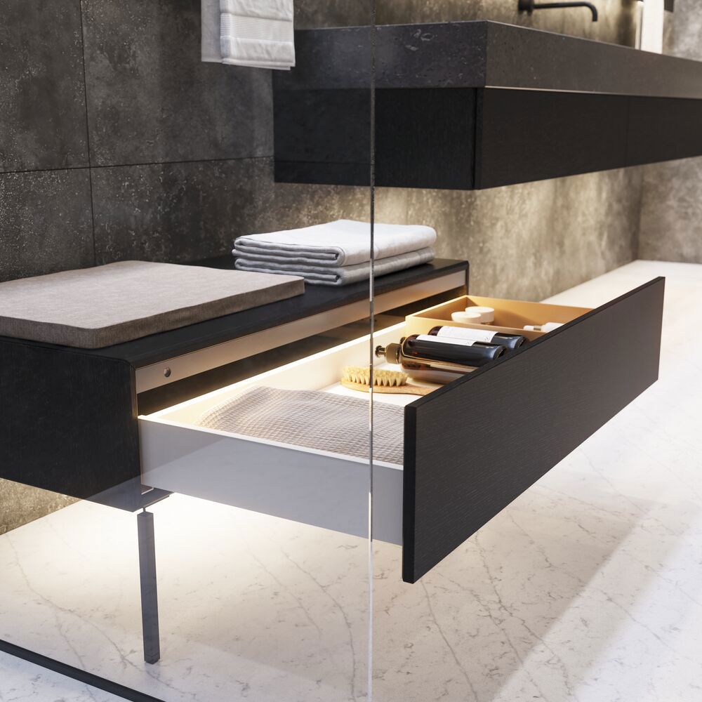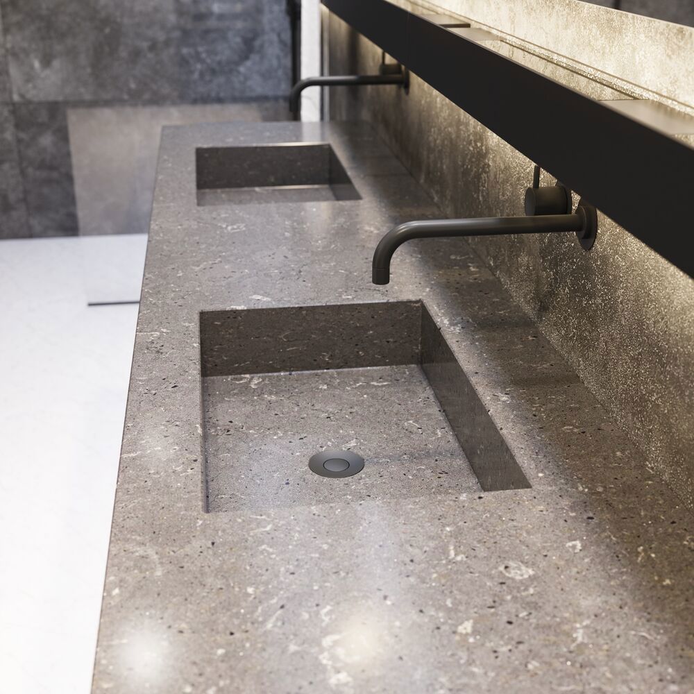 Calidris Unique in 12,5 cm hoogte en 50 cm diepte is gemaakt om gewicht en karakter toe te voegen aan de badkamer. De zachte, ronde lijnen contrasteren mooi met het massieve profiel en het Silestone® materiaal biedt een ervaring van compromisloze kwaliteit - mooi als natuursteen, zijdezacht om aan te raken en met een sterkte die het bestand maakt tegen vlekken, krassen en vocht. Met ten minste 20% gerecycled materiaal en milieuvriendelijke productie is het een keuze die luxe en verantwoordelijkheid combineert. De spoelbak wordt op maat gemaakt om precies in je ruimte te passen en je kunt kiezen uit de hele exclusieve kleurencollectie van Cosentino - van gedempte, tijdloze tinten tot diepe, dramatische kleuren. Het model kan in de kast worden gemonteerd voor een klassieke, verfijnde look of aan de muur worden gehangen voor een licht en zwevend ontwerp. De wandbevestiging opent nieuwe mogelijkheden in het interieurontwerp en geeft de badkamer een exclusief, ander karakter dat de sfeer op een unieke manier bepaalt.