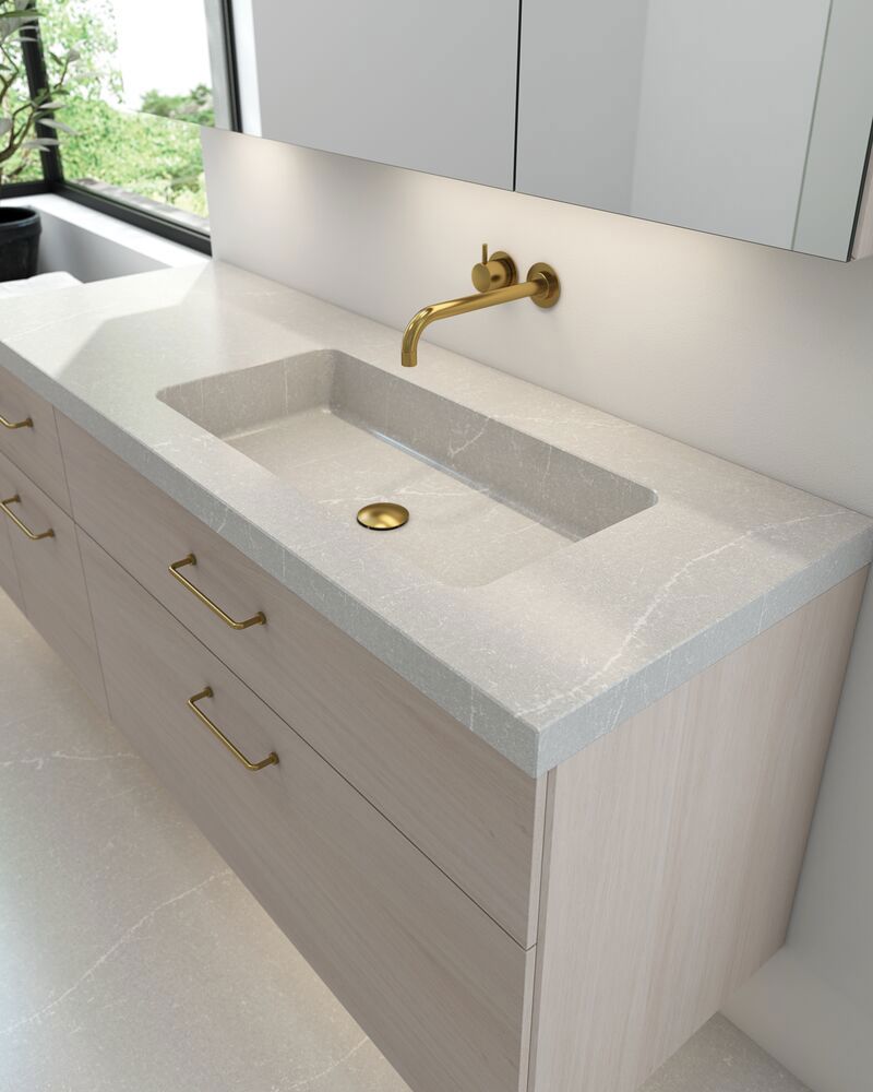 Het Dansani Calidris Unique afdekblad, gemaakt van Silestone, is een indrukwekkende combinatie van design en duurzaamheid die je badkamer zal transformeren. Dit afdekblad is niet alleen mooi om te zien, maar is gemaakt van het slijtvaste Silestone-materiaal dat bestand is tegen dagelijks gebruik en zijn schoonheid behoudt. Het werkblad is op maat verkrijgbaar, zodat je het kunt aanpassen aan jouw behoeften en je badkamer. De kleur van het werkblad kan afwijken van de getoonde afbeelding, dus we raden je aan om voor je aankoop een fysiek monster te bekijken bij een verkoper.