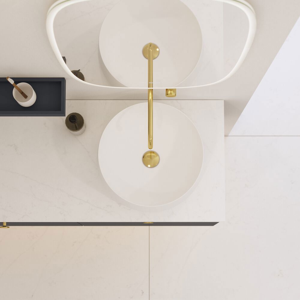 Het Dansani Calidris Unique afdekblad, gemaakt van Silestone, is een indrukwekkende combinatie van design en duurzaamheid die je badkamer zal transformeren. Dit afdekblad is niet alleen mooi om te zien, maar is gemaakt van het slijtvaste Silestone-materiaal dat bestand is tegen dagelijks gebruik en zijn schoonheid behoudt. Het werkblad is op maat verkrijgbaar, zodat je het kunt aanpassen aan jouw behoeften en je badkamer. De kleur van het werkblad kan afwijken van de getoonde afbeelding, dus we raden je aan om voor je aankoop een fysiek monster te bekijken bij een verkoper.