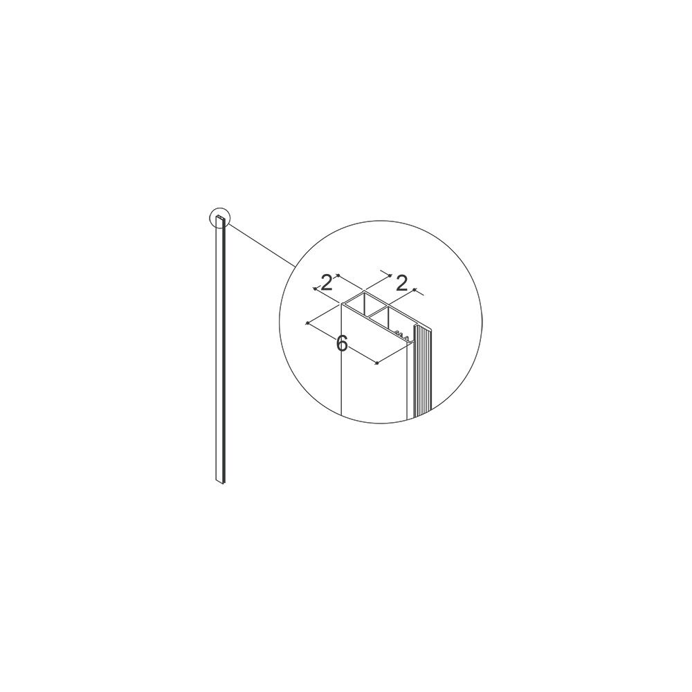 Dit verbredingsprofiel is te gebruiken voor model C, vast paneel met draaideur van Dansani Match. Het kan worden gecombineerd met alle soorten deuren en vaste douchewanden en vergroot de afmeting met 20 mm. Mogelijkheid tot boren voor leidingdoorvoer van 20-40 mm gat.