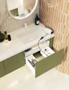 Kies je voor een Dansani Calidris badmeubel met 2 lades, dan krijg je minimalistisch design en strakke lijnen in je badkamer. Met een diepte van 50 cm geeft het badmeubel je alle ruimte. In de twee diepe lades kun je gemakkelijk alle spullen opbergen die je dagelijks in de badkamer gebruikt. Dit is een badmeubel waar functionaliteit en design samenkomen. Dit meubel is de ideale oplossing als je op zoek bent naar zowel elegantie als organisatie in je badkamer. Let op: er geldt een opstarttarief (BI1) per eiken en wenskleur. Deze wordt eenmalig betaald per eiken en wenskleur, ongeacht het aantal producten. Vergeet niet de kleine praktische dingen aan je badkamermeubels toe te voegen waar je dagelijks plezier van hebt. Bijvoorbeeld verlichting in lades en kastjes, ingebouwde stopcontacten en gedimde sensorlampjes onder de meubels om nachtelijke bezoeken aan de badkamer te begeleiden. Opties worden tegelijk met je meubels bested.