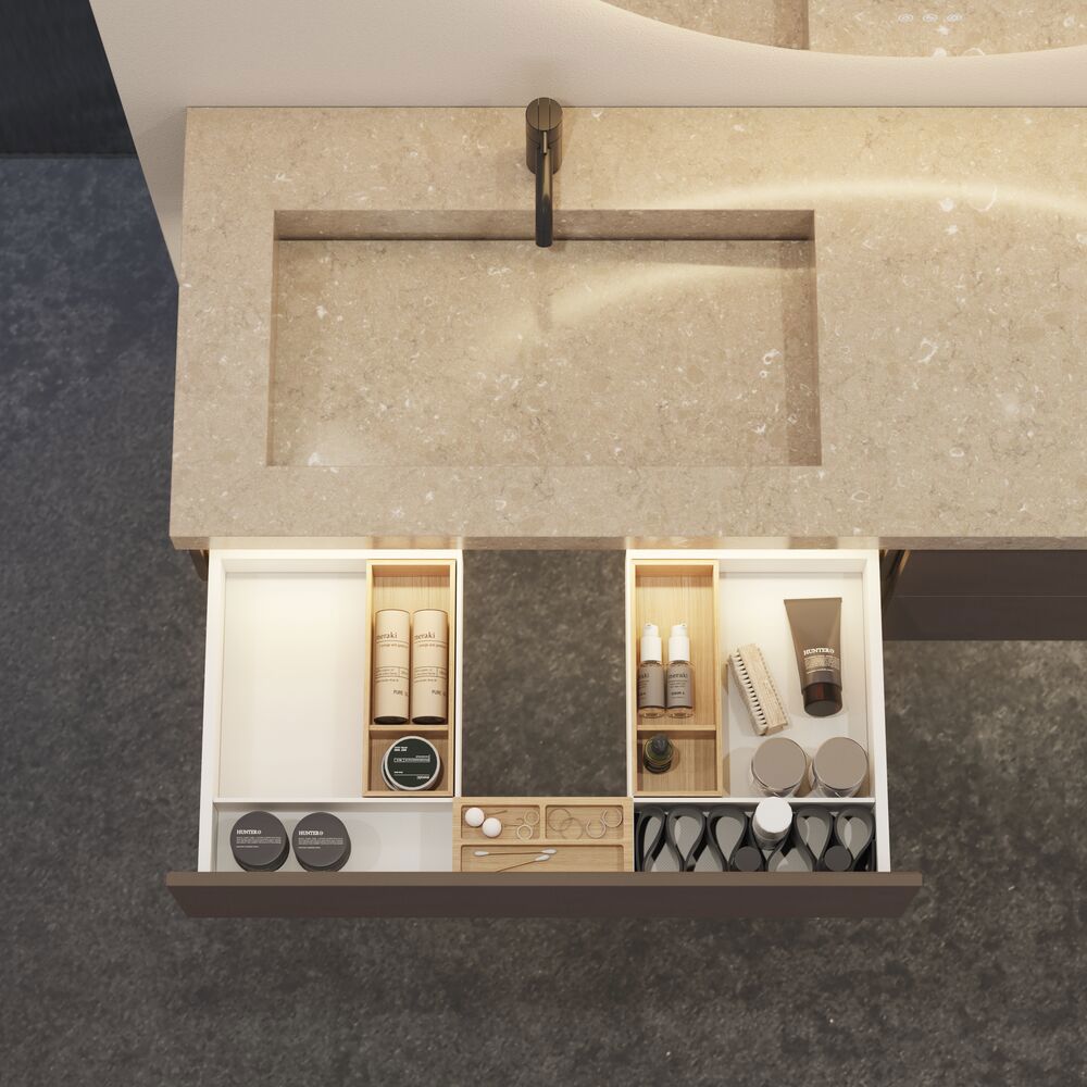 Dansani Calidris 20 cm hoge wasmeubelen combineren moderniteit met praktisch design op een prachtige manier. De elegante badmeubels bieden een minimalistische esthetiek en zijn ideaal voor een moderne badkamer. De eenvoudige en strakke lijnenen creëeren een tijdloze elegantie, terwijl de lade de driscrete opbergruimte biedt en de badkamer georganiseerd houdt. Dansani Calidris 20 cm hoge badmeubels zijn de ideale keuze voor wie opzoek is naar een moderne en stijlvolle look in de badkamer. Hun eenvoudige ontwerp en functionele eigenschappen maken ze een perfecte aanvulling op elk modern badkamerinterieur waar stijl en functionaliteit hand in hand gaan. Let op: er geldt een opstarttarief (BI1) per eiken en wenskleur. Deze wordt eenmalig betaald per eiken en wenskleur, ongeacht het aantal producten. Vergeet niet de kleine praktische dingen aan je badkamermeubels toe te voegen waar je dagelijks plezier van hebt. Bijvoorbeeld verlichting in lades en kastjes, ingebouwde stopcontacten en gedimde sensorlampjes onder de meubels om nachtelijke bezoeken aan de badkamer te begeleiden. Opties worden tegelijk met je meubels bested.