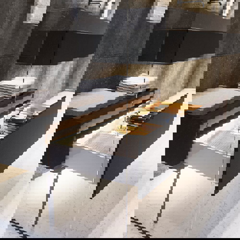Dansani Calidris 20 cm hoge wasmeubelen combineren moderniteit met praktisch design op een prachtige manier. De elegante badmeubels bieden een minimalistische esthetiek en zijn ideaal voor een moderne badkamer. De eenvoudige en strakke lijnenen creëeren een tijdloze elegantie, terwijl de lade de driscrete opbergruimte biedt en de badkamer georganiseerd houdt. Dansani Calidris 20 cm hoge badmeubels zijn de ideale keuze voor wie opzoek is naar een moderne en stijlvolle look in de badkamer. Hun eenvoudige ontwerp en functionele eigenschappen maken ze een perfecte aanvulling op elk modern badkamerinterieur waar stijl en functionaliteit hand in hand gaan. Let op: er geldt een opstarttarief (BI1) per eiken en wenskleur. Deze wordt eenmalig betaald per eiken en wenskleur, ongeacht het aantal producten. Vergeet niet de kleine praktische dingen aan je badkamermeubels toe te voegen waar je dagelijks plezier van hebt. Bijvoorbeeld verlichting in lades en kastjes, ingebouwde stopcontacten en gedimde sensorlampjes onder de meubels om nachtelijke bezoeken aan de badkamer te begeleiden. Opties worden tegelijk met je meubels bested.