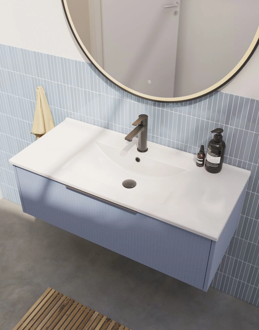Wastafelonderkast met 1 lade en geribbeld front