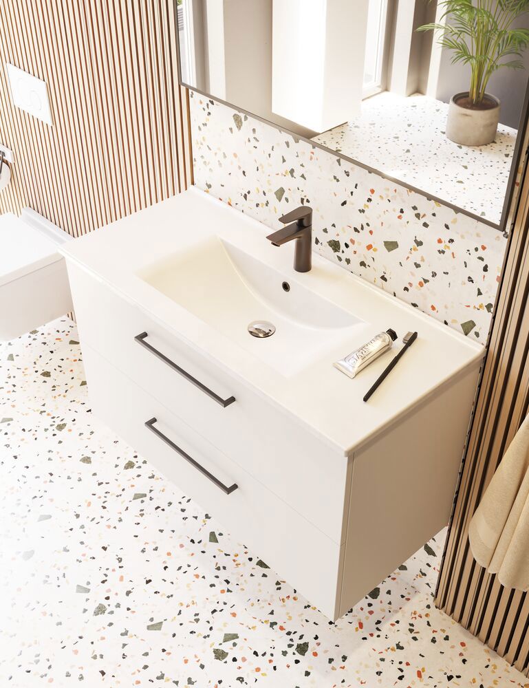 Hier vind je een overzicht van de wastafels die passen bij het badmeubel dat je hebt gekozen. Vergeet niet een werkblad te kiezen als je voor een aanrechtblad kiest.