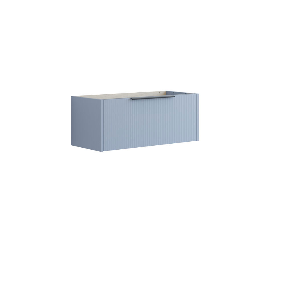 Dit badmeubel combineert de eenvoudige functionaliteit van 1 lade met een stijlvol gestreept front om je badkamer een uniek en modern tintje te geven. Kies uit wit, zand of lichtblauw om het meubel aan te passen aan je persoonlijke stijl. De ruime lade geeft je overzicht en opbergruimte terwijl de handgreep gemonteerd is en klaar voor gebruik.