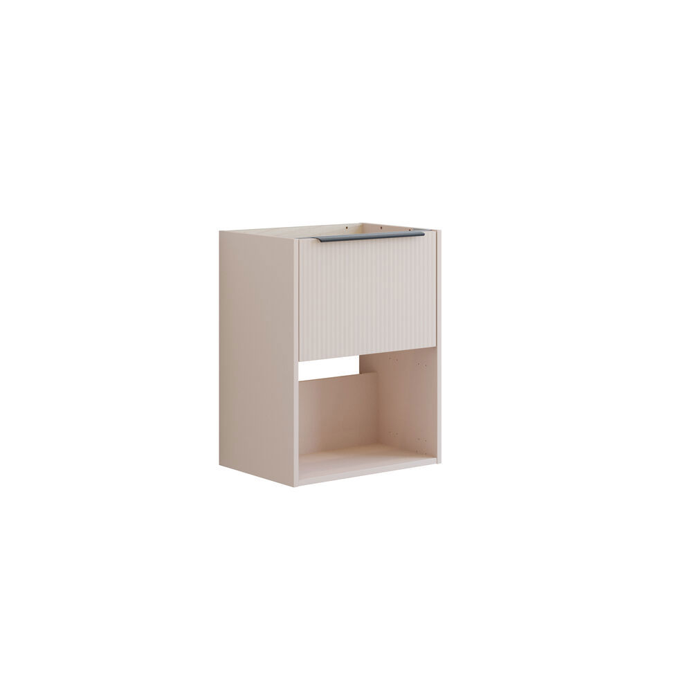 Een minimalistisch en ruimtebesparend badmeubel - perfect voor de kleine badkamer. De ruime lade geeft je een goed overzicht en verrassend veel opbergruimte. De lade sluit zacht en geruisloos dankzij soft-close en hoogwaardige glijders. De bijgeleverde zwarte handgreep vormt een mooi contrast met het gestreepte witte matte oppervlak en geeft het meubel een elegante en exclusieve uitstraling. Een stijlvolle keuze voor moderne interieurs.