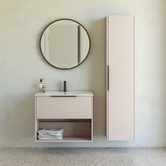 Hier heb je zowel opbergruimte als de mogelijkheid om je favoriete spullen uit te stallen. Dit badmeubel heeft een praktische lade en een open vak dat perfect is voor het uitstallen van je mooie handdoeken of decoratieve items. Verkrijgbaar in drie elegante kleuren: wit, zand en lichtblauw. De lade is ruim en de bijpassende handgreep is bevestigd zodat hij klaar is voor gebruik.