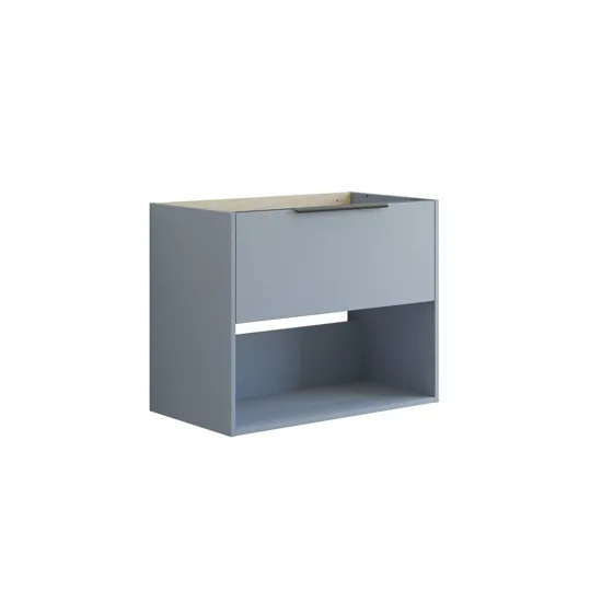 Hier heb je zowel opbergruimte als de mogelijkheid om je favoriete spullen uit te stallen. Dit badmeubel heeft een praktische lade en een open vak dat perfect is voor het uitstallen van je mooie handdoeken of decoratieve items. Verkrijgbaar in drie elegante kleuren: wit, zand en lichtblauw. De lade is ruim en de bijpassende handgreep is bevestigd zodat hij klaar is voor gebruik.