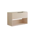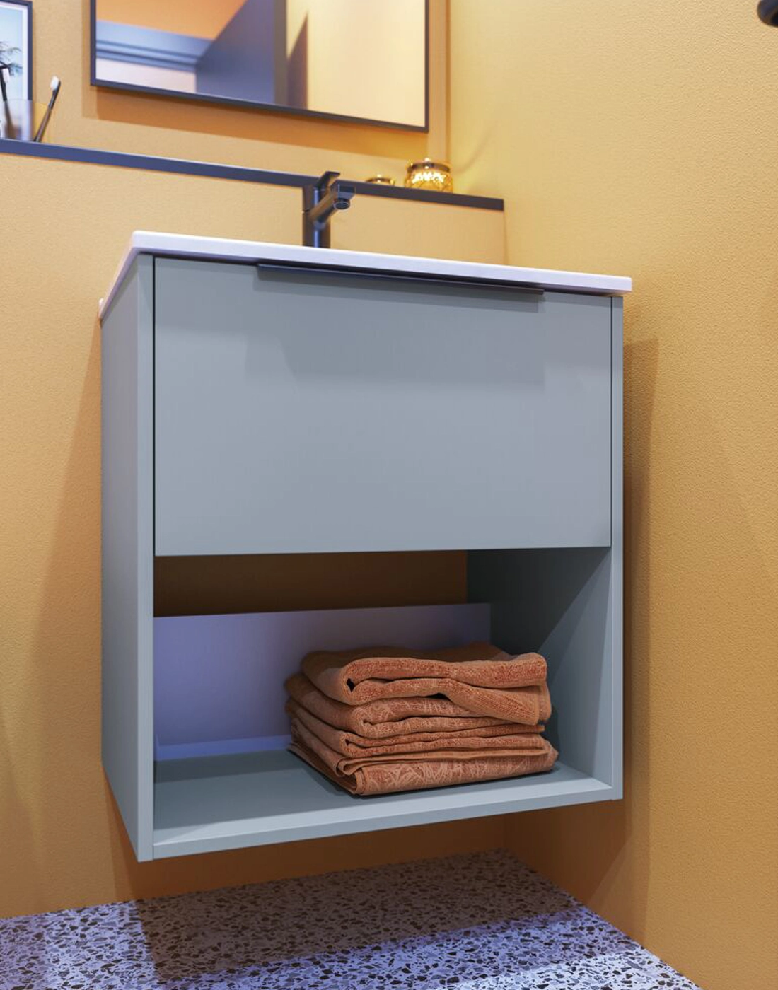 Hier heb je zowel opbergruimte als de mogelijkheid om je favoriete spullen uit te stallen. Dit badmeubel heeft een praktische lade en een open vak dat perfect is voor het uitstallen van je mooie handdoeken of decoratieve items. Verkrijgbaar in drie elegante kleuren: wit, zand en lichtblauw. De lade is ruim en de bijpassende handgreep is bevestigd zodat hij klaar is voor gebruik.