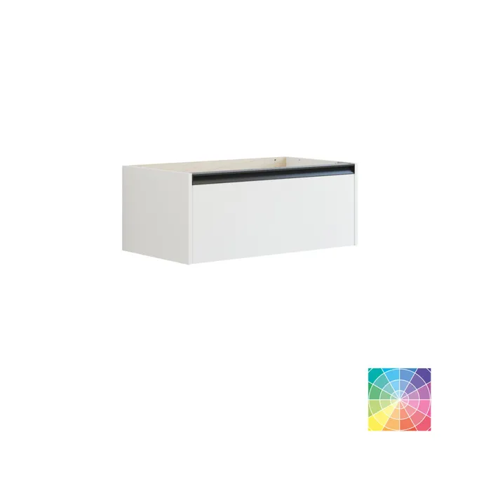 Transformeer uw badkamer in een stijlvolle oase met het wastafelonderkast met geïntegreerde greep. Dit kast heeft één diepe lade van 32 cm hoog en biedt optimale opbergruimte voor uw essentiële badkamerartikelen. De greep is standaard zwart, wat een moderne contrast toevoegt aan uw badkamer. Als u ervoor kiest om uw wastafelonderkast in een optionele kleur te laten maken, wordt de greep in dezelfde tint gekleurd, wat een harmonieuze samenhang creëert. Het minimalistische ontwerp met de geïntegreerde greep zorgt voor een strakke en moderne uitstraling die perfect past bij elke moderne badkamer. Het is niet alleen functioneel, maar ook een esthetische toevoeging die het gemakkelijk maakt om uw ruimte opgeruimd te houden. Let op: er geldt een opstarttarief (BI1) voor producten met wenskleur. Deze wordt eenmalig betaald per wenskleur, ongeacht het aantal producten. Vergeet niet de kleine praktische dingen aan je badkamermeubels toe te voegen waar je dagelijks plezier van hebt. Bijvoorbeeld verlichting in lades en kastjes, ingebouwde stopcontacten en gedimde sensorlampjes onder de meubels om nachtelijke bezoeken aan de badkamer te begeleiden. Opties worden tegelijk met je meubels bested.