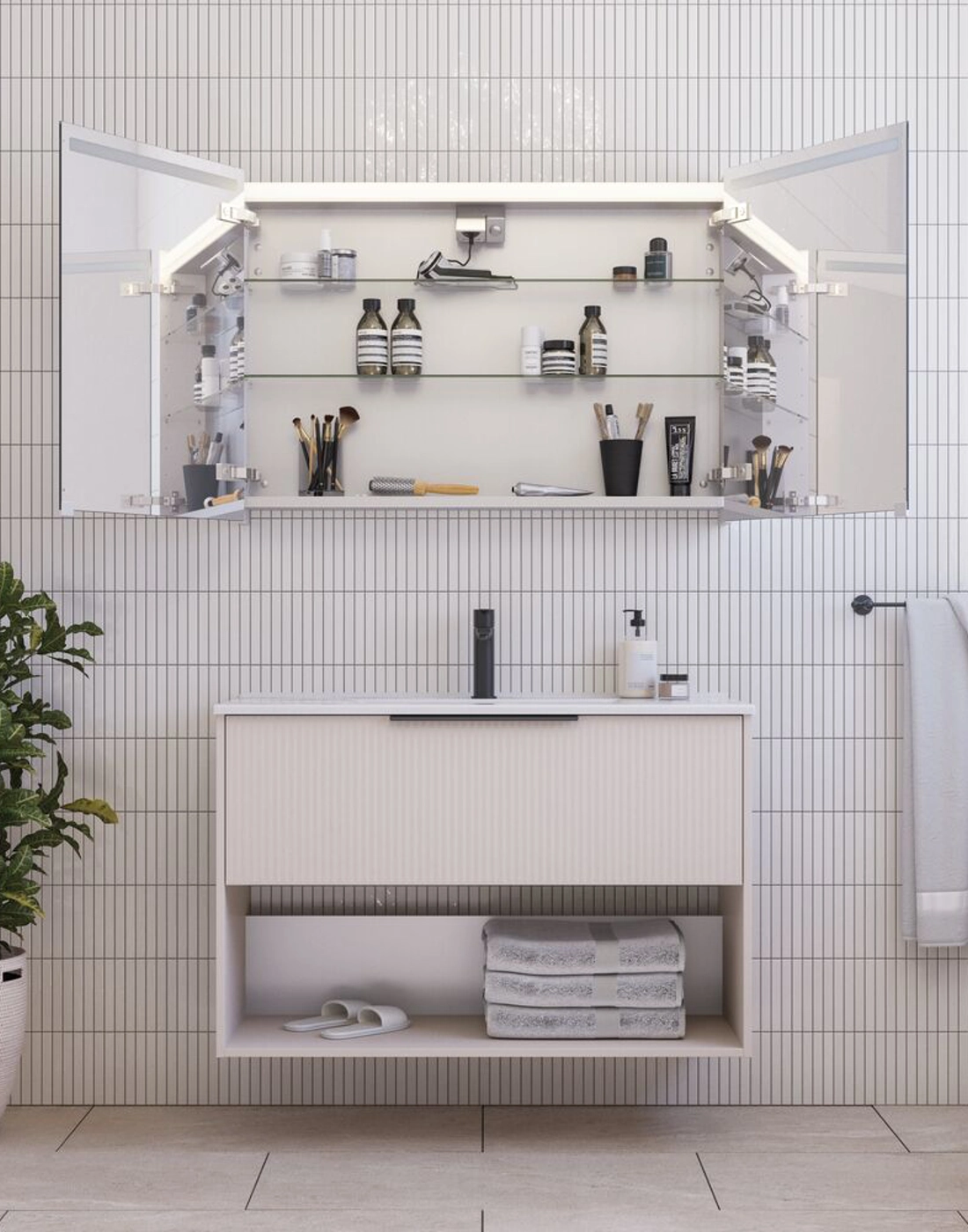 Wastafelonderkast met 1 lade, open vak en geribbeld front