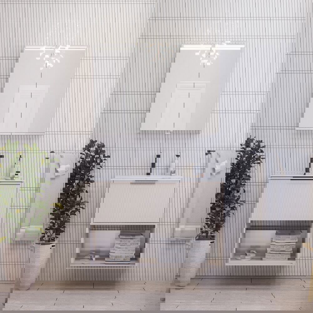 Dit badmeubel combineert het beste van twee werelden: een praktische lade, een open vak om je favoriete spullen uit te stallen en een gestreepte voorkant voor een unieke en elegante look. Kies tussen de kleuren wit, zand of lichtblauw om de kleur te vinden die het beste bij jouw badkamer past. De handgreep is al gemonteerd, dus hij is klaar voor gebruik.
