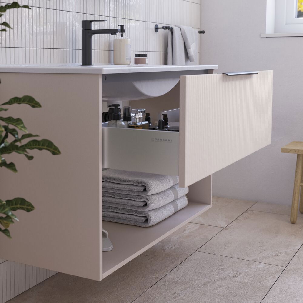 Wastafelonderkast met 1 lade, open vak en geribbeld front