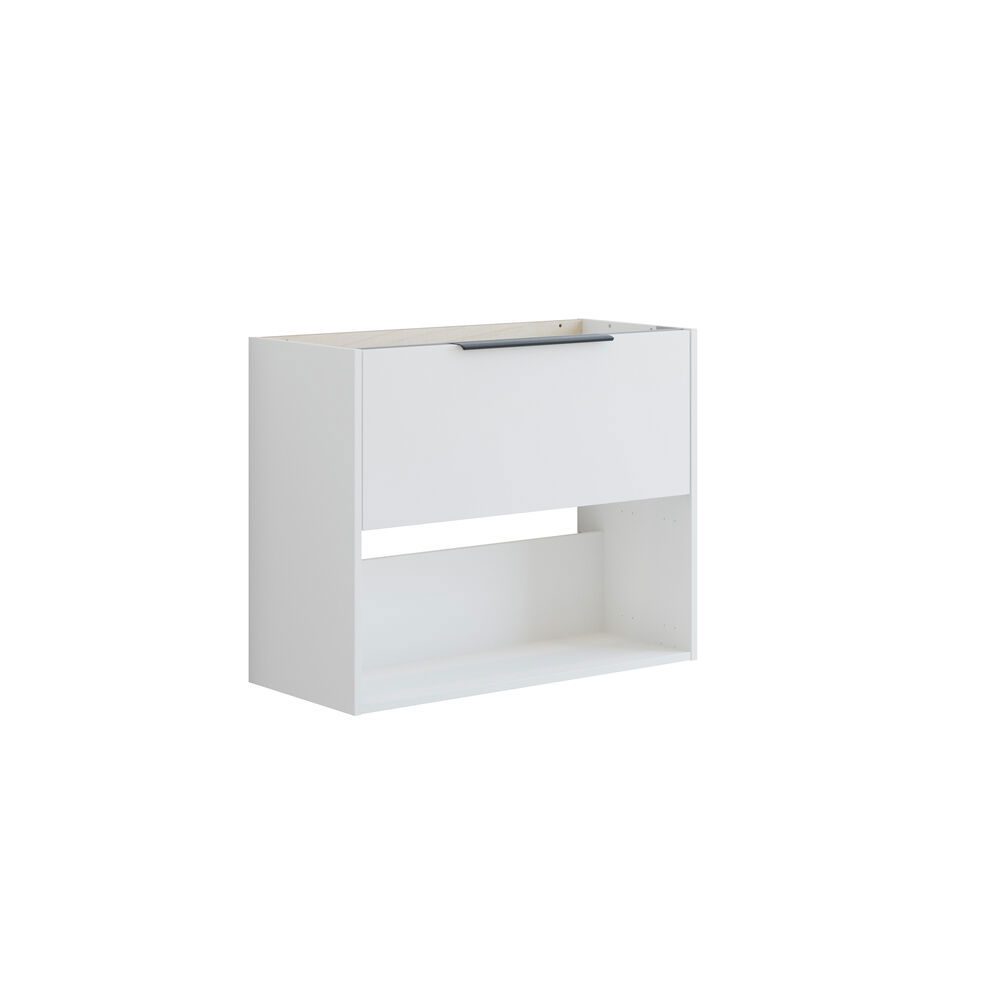 Een ruim badmeubel met één grote lade - perfect voor wie overzicht en functionaliteit in één oplossing wil. De brede lade loopt op verstelbare glijders en sluit zacht en geruisloos met soft-close. Je krijgt zowel ruimte als esthetiek in één pakket. De meegeleverde zwarte handgreep benadrukt de eenvoudige lijnen van het meubel en zorgt voor een moderne afwerking. Kies tussen de natuurlijke warmte van bruin eiken of de zachte, lichte tint van zand mat.