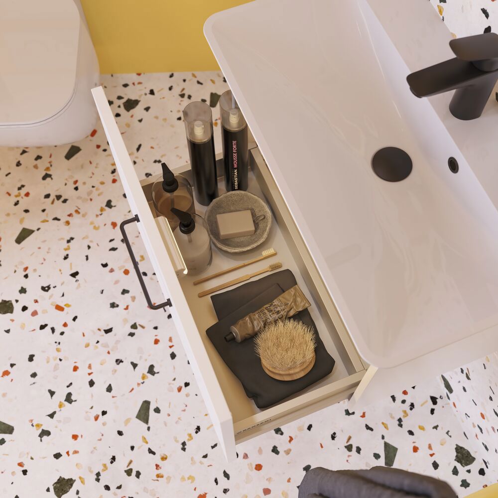 Ontdek de perfecte balans tussen functionaliteit en design met het Dansani Mido+ badmeubel met 1 lade - hier in een diepte van 35 cm. Het badmeubel is perfect voor badkamers waar ruimte schaars is, maar je niet wilt inleveren op stijl. Met slimme opbergmogelijkheden en een elegant minimalistisch ontwerp past dit badmeubel in elk modern interieurontwerp. Alle Mido+ meubels worden geleverd met de klassieke handgreep Base in chroom. Je kunt een andere greep kiezen voor een andere look, maar vergeet niet dat deze samen met je meubels moet worden besteld. Vergeet niet de kleine praktische dingen aan je badkamermeubels toe te voegen waar je dagelijks plezier van hebt. Bijvoorbeeld verlichting en ladeverdelers voor je lades.