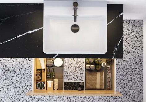 Hier vind je een overzicht van de wastafels die passen bij het badmeubel dat je hebt gekozen. Vergeet niet een werkblad te kiezen als je voor een aanrechtblad kiest.