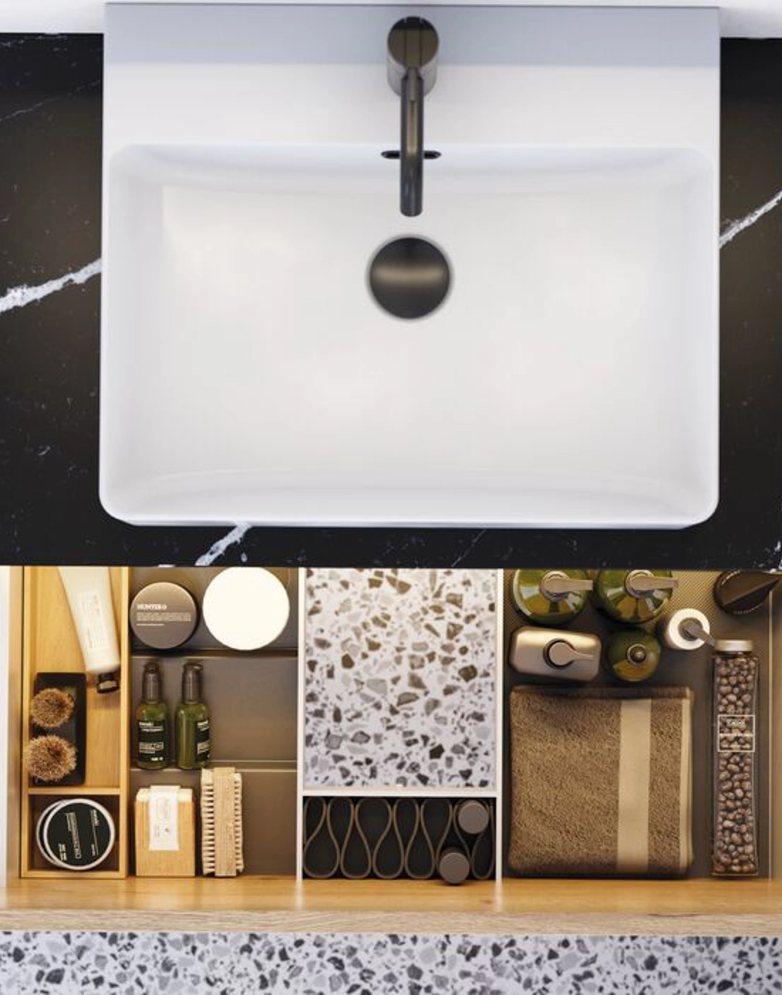 Upgrade je badkamer met stijl en functionaliteit met een badmeubel. Het slimme ontwerp met één lade geeft je de perfecte opbergoplossing voor alle spullen in je badkamer. Houd je badkamer opgeruimd en georganiseerd met dit elegante meubel dat in elk interieur past. Het badmeubel is verkrijgbaar in verschillende kleuren, zodat je kunt kiezen voor de kleur die het beste bij jouw stijl past. Let op: er geldt een opstarttarief (BI1) voor producten met wenskleur. Deze wordt eenmalig betaald per wenskleur, ongeacht het aantal producten. Vergeet niet de kleine praktische dingen aan je badkamermeubels toe te voegen waar je dagelijks plezier van hebt. Bijvoorbeeld verlichting in lades en kastjes, ingebouwde stopcontacten en gedimde sensorlampjes onder de meubels om nachtelijke bezoeken aan de badkamer te begeleiden. Opties worden tegelijk met je meubels bested.