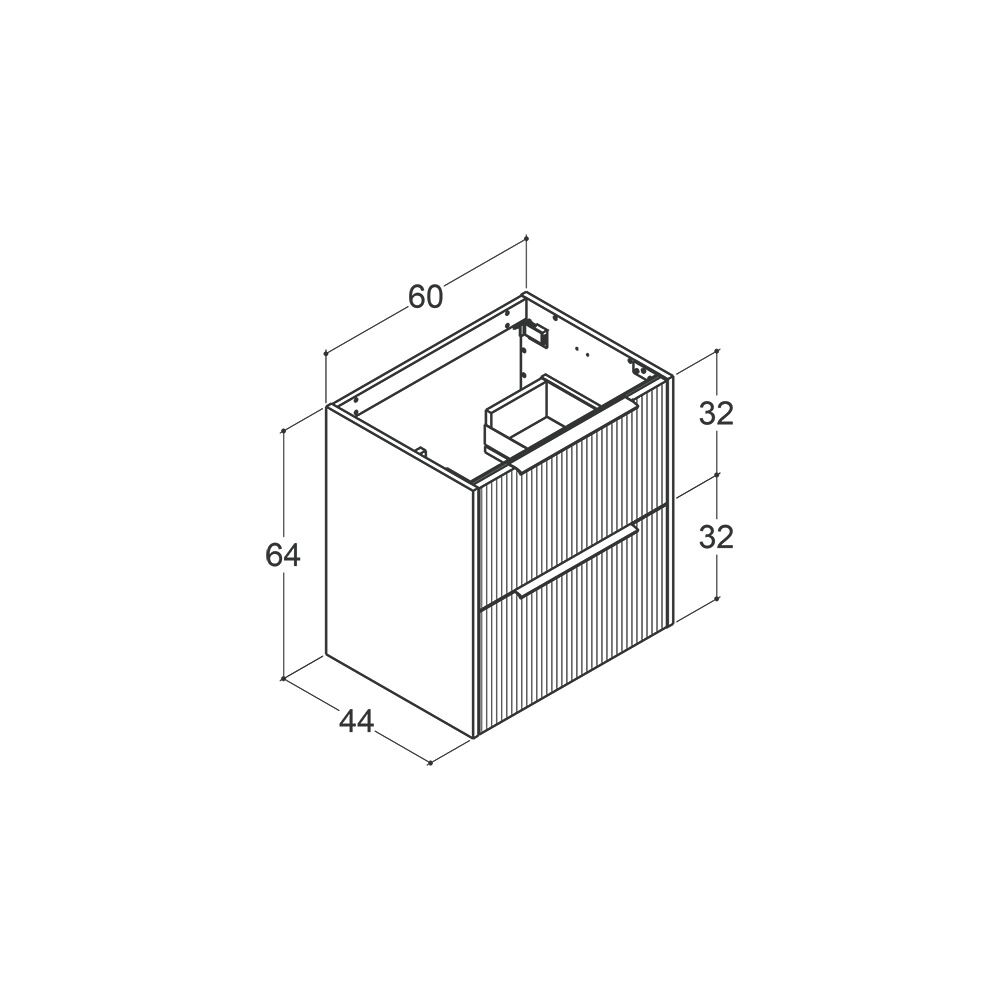 Wastafelonderkast met 2 laden en geribbeld front
