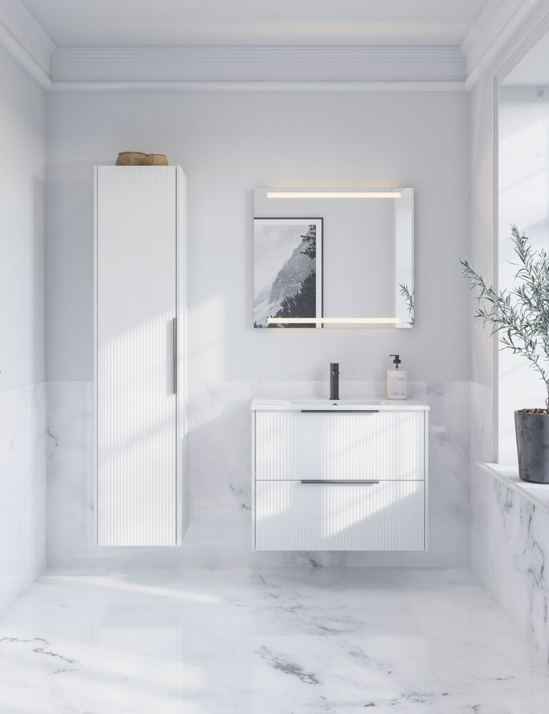 Dit badmeubel combineert functionaliteit en stijl met zijn 2 ruime lades en een elegant gestreept front. Dit meubel is verkrijgbaar in wit, zand of lichtblauw en geeft je badkamer een moderne en unieke uitstraling. De lades bieden veel opbergruimte en de handgrepen zijn gemonteerd en klaar voor gebruik.