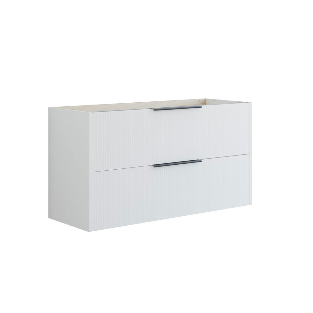 Dit badmeubel combineert functionaliteit en stijl met zijn 2 ruime lades en een elegant gestreept front. Dit meubel is verkrijgbaar in wit, zand of lichtblauw en geeft je badkamer een moderne en unieke uitstraling. De lades bieden veel opbergruimte en de handgrepen zijn gemonteerd en klaar voor gebruik.