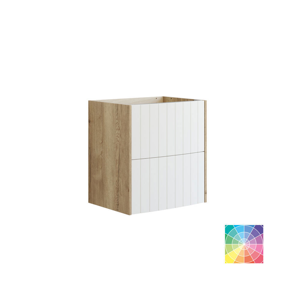 Deze meubelen met twee laden bieden een charmant retro design voor je badkamer. De gebogen fronten hebben verticale groeven voor een karaktervol design. De kasten zijn verkrijgbaar in verschillende kleuren, zodat je de kleur kunt kiezen die het beste bij jouw persoonlijke stijl past. Naast hun mooie uiterlijk zijn de kasten ook praktisch met twee ruime lades voor het opbergen van je benodigdheden. Voeg tijdloze elegantie toe aan je badkamer met deze badmeubels en geniet van de unieke touch die ze aan de ruimte geven. Let op: er geldt een opstarttarief (BI1) voor producten met wenskleur. Deze wordt eenmalig betaald per wenskleur, ongeacht het aantal producten. Vergeet niet de kleine praktische dingen aan je badkamermeubels toe te voegen waar je dagelijks plezier van hebt. Bijvoorbeeld verlichting in lades en kastjes, ingebouwde stopcontacten en gedimde sensorlampjes onder de meubels om nachtelijke bezoeken aan de badkamer te begeleiden. Opties worden tegelijk met je meubels bested.