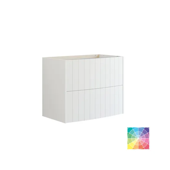 Deze meubelen met twee laden bieden een charmant retro design voor je badkamer. De gebogen fronten hebben verticale groeven voor een karaktervol design. De kasten zijn verkrijgbaar in verschillende kleuren, zodat je de kleur kunt kiezen die het beste bij jouw persoonlijke stijl past. Naast hun mooie uiterlijk zijn de kasten ook praktisch met twee ruime lades voor het opbergen van je benodigdheden. Voeg tijdloze elegantie toe aan je badkamer met deze badmeubels en geniet van de unieke touch die ze aan de ruimte geven. Let op: er geldt een opstarttarief (BI1) voor producten met wenskleur. Deze wordt eenmalig betaald per wenskleur, ongeacht het aantal producten. Vergeet niet de kleine praktische dingen aan je badkamermeubels toe te voegen waar je dagelijks plezier van hebt. Bijvoorbeeld verlichting in lades en kastjes, ingebouwde stopcontacten en gedimde sensorlampjes onder de meubels om nachtelijke bezoeken aan de badkamer te begeleiden. Opties worden tegelijk met je meubels bested.