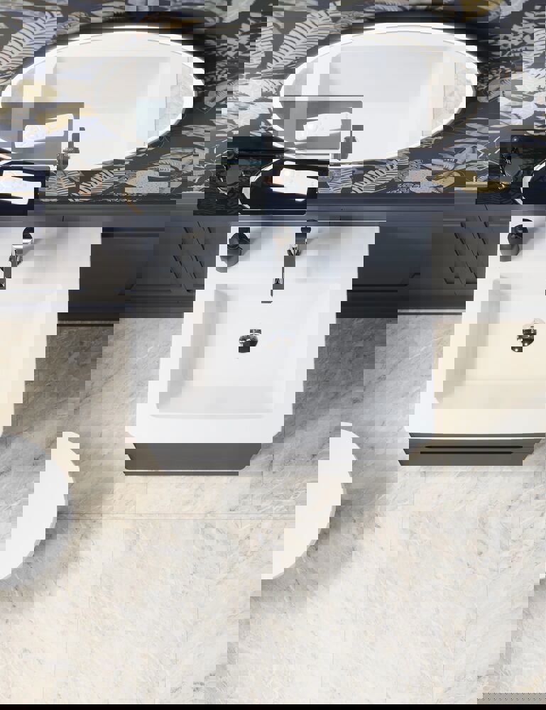 Versterk je badkamer met een elegante wastafelonderkast die zachte, afgeronde vormen combineert met een gestroomlijnde uitstraling – perfect voor een vrouwelijke vintage-look. De moderne front behoudt de charme en eenvoud van klassieke commodes en creëert een tijdloze sfeer met een vleugje elegantie. De geïntegreerde handgrepen in de front van de kast benadrukken het minimalistische ontwerp, terwijl je kunt kiezen tussen een pure witte kleur of een unieke tint die perfect aansluit bij je persoonlijke stijl. Als extra detail is de kast verkrijgbaar met decoratieve zwarte poten die de badkamer een lichte en luchtige uitstraling geven. Let op: er geldt een opstarttarief (BI1) voor producten met wenskleur. Deze wordt eenmalig betaald per wenskleur, ongeacht het aantal producten. Vergeet niet de kleine praktische dingen aan je badkamermeubels toe te voegen waar je dagelijks plezier van hebt. Bijvoorbeeld verlichting in lades en kastjes, ingebouwde stopcontacten en gedimde sensorlampjes onder de meubels om nachtelijke bezoeken aan de badkamer te begeleiden. Opties worden tegelijk met je meubels bested.