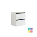 Geef je badkamer een moderne touch met het wastafelonderkast met geïntegreerde greep. Dit kastje heeft twee diepe lades van 32 cm hoog en biedt voldoende opbergruimte voor je dagelijkse benodigdheden. De greep is standaard zwart, wat zorgt voor een strakke look, en als je het wastafelonderkast in een andere kleur kiest, wordt de greep harmonieus aangepast aan de kleur van het kastje. Dit minimalistische ontwerp creëert een elegante sfeer en helpt je badkamer netjes te houden. Let op: er geldt een opstarttarief (BI1) voor producten met wenskleur. Deze wordt eenmalig betaald per wenskleur, ongeacht het aantal producten. Vergeet niet de kleine praktische dingen aan je badkamermeubels toe te voegen waar je dagelijks plezier van hebt. Bijvoorbeeld verlichting in lades en kastjes, ingebouwde stopcontacten en gedimde sensorlampjes onder de meubels om nachtelijke bezoeken aan de badkamer te begeleiden. Opties worden tegelijk met je meubels bested.