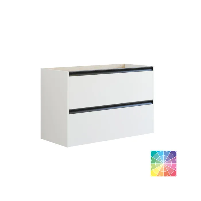 Geef je badkamer een moderne touch met het wastafelonderkast met geïntegreerde greep. Dit kastje heeft twee diepe lades van 32 cm hoog en biedt voldoende opbergruimte voor je dagelijkse benodigdheden. De greep is standaard zwart, wat zorgt voor een strakke look, en als je het wastafelonderkast in een andere kleur kiest, wordt de greep harmonieus aangepast aan de kleur van het kastje. Dit minimalistische ontwerp creëert een elegante sfeer en helpt je badkamer netjes te houden. Let op: er geldt een opstarttarief (BI1) voor producten met wenskleur. Deze wordt eenmalig betaald per wenskleur, ongeacht het aantal producten. Vergeet niet de kleine praktische dingen aan je badkamermeubels toe te voegen waar je dagelijks plezier van hebt. Bijvoorbeeld verlichting in lades en kastjes, ingebouwde stopcontacten en gedimde sensorlampjes onder de meubels om nachtelijke bezoeken aan de badkamer te begeleiden. Opties worden tegelijk met je meubels bested.